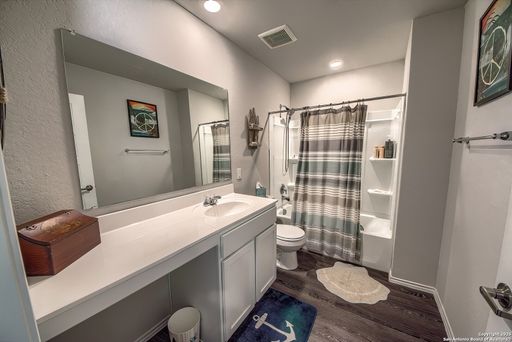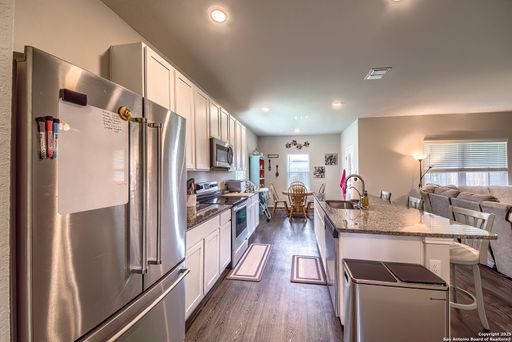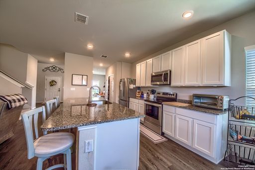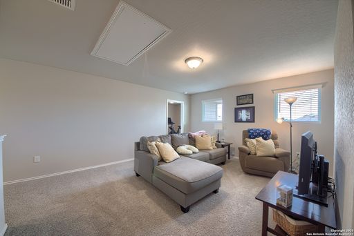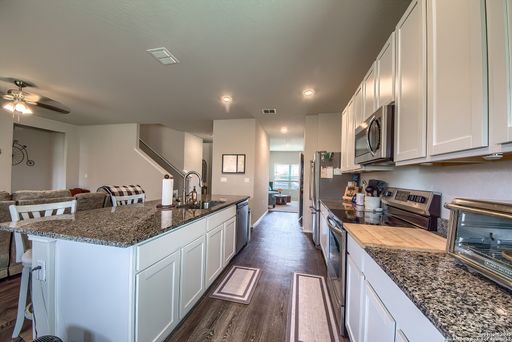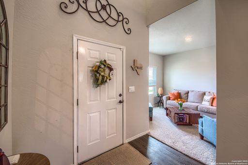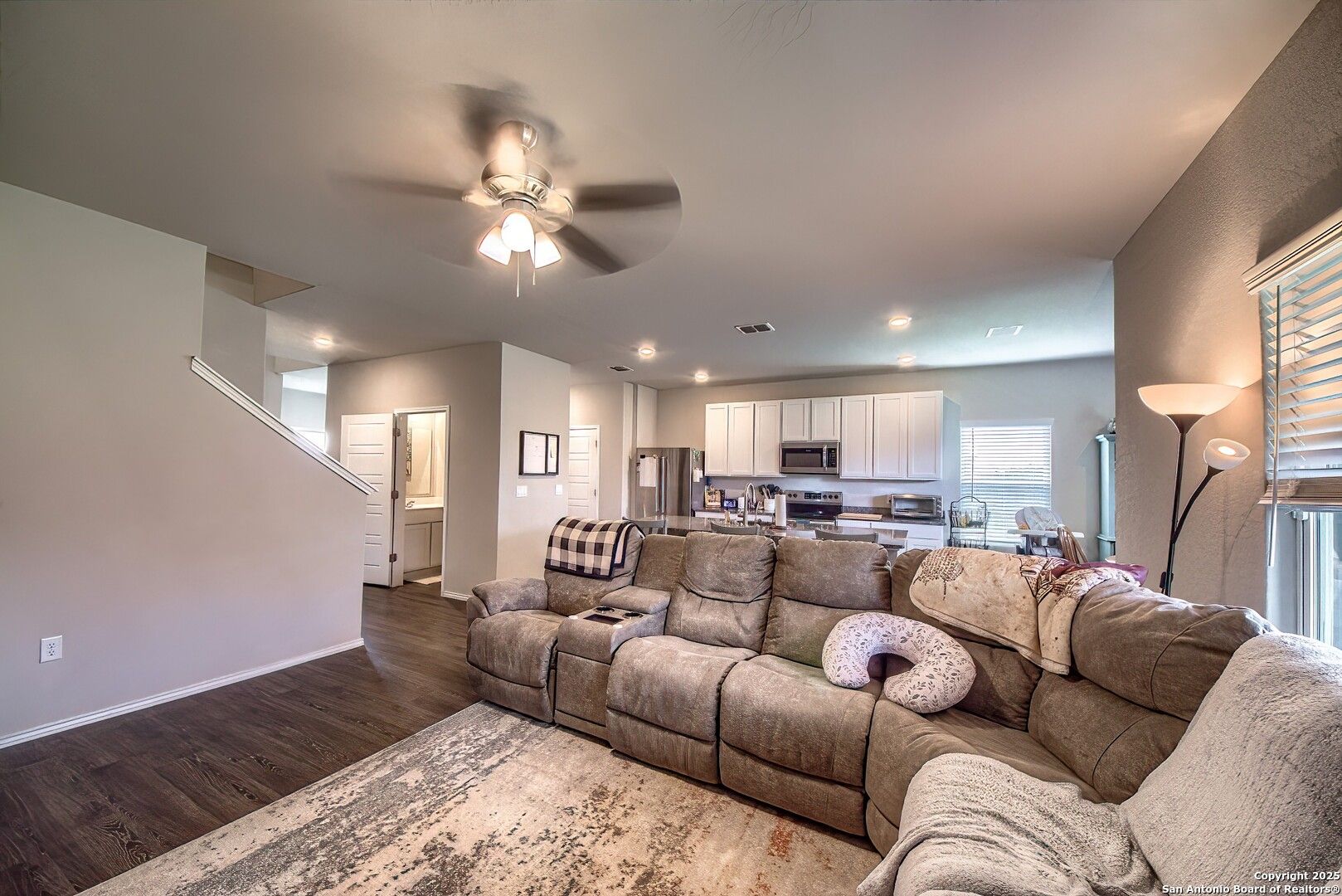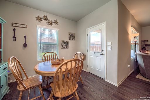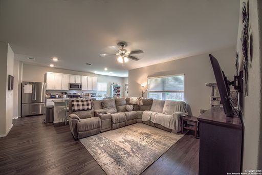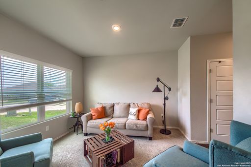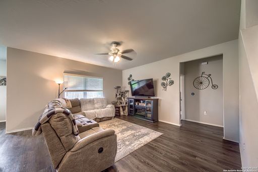 Welcome to this beautiful and versatile two-story home featuring four bedrooms, two and a half bathrooms, and plenty of living space designed for comfort and flexibility. The open-concept floor plan connects the living, dining, and kitchen areas, creating an inviting atmosphere perfect for everyday living or entertaining. The primary suite is conveniently located downstairs for added privacy, while three additional bedrooms and a large game room upstairs provide ample space for family or guests. A flex room on the main floor offers the perfect spot for a home office, playroom, or guest suite. Enjoy outdoor living with a charming covered front porch and a spacious covered patio overlooking a nicely sized backyard, ideal for relaxing or hosting gatherings. Located near Highway 35 and Loop 410, this home offers quick access to major employers and attractions, including Toyota Manufacturing, Palo Alto College, Texas A&M University–San Antonio, and Brooke City Base, and is just a short drive to Braunig Lake Park. Don’t miss the opportunity to make this well-located, family-friendly home yours—schedule your showing today!