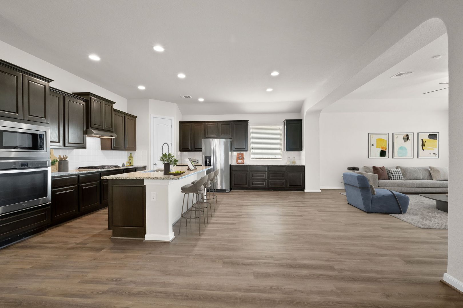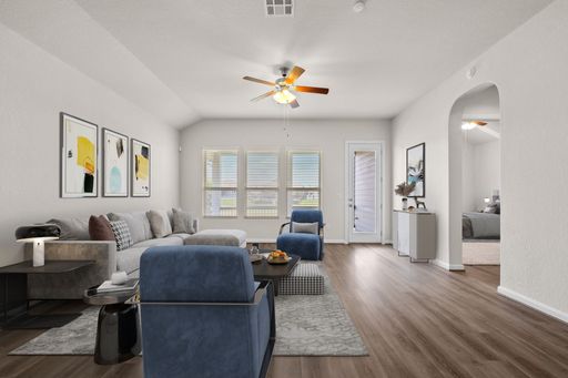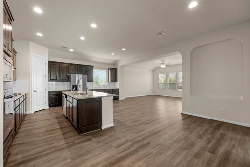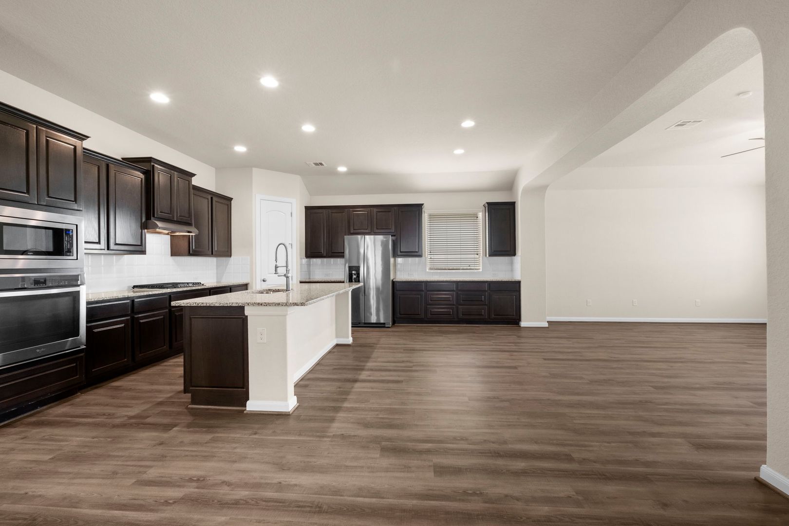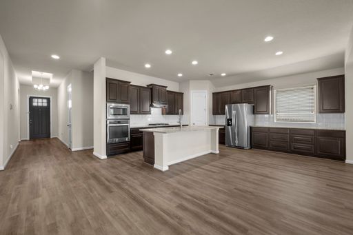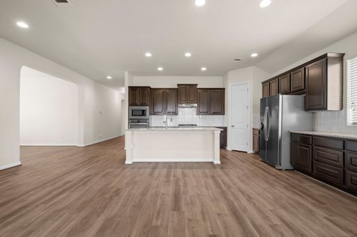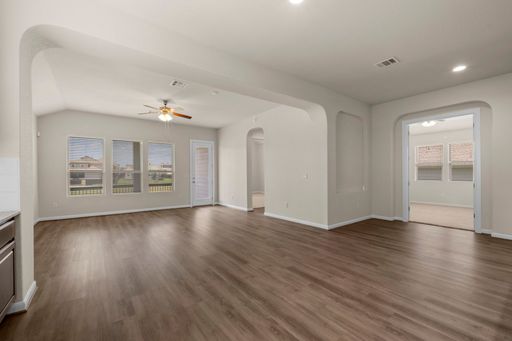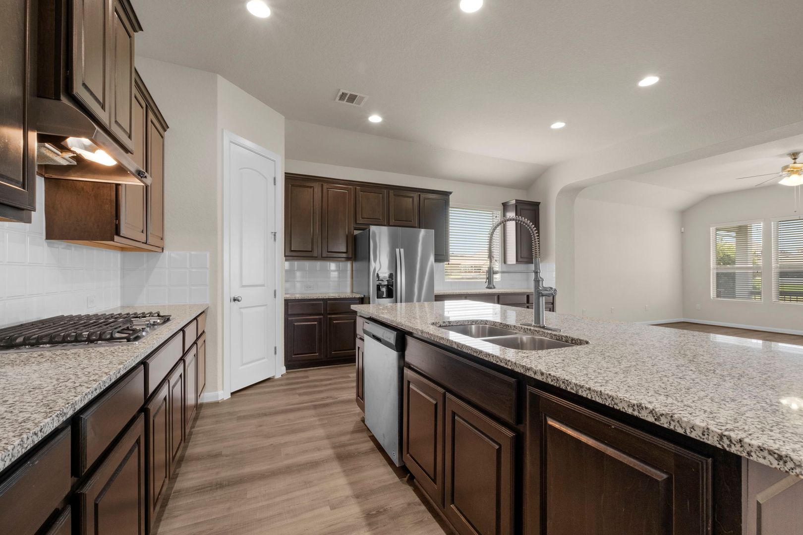 When function meets beauty is the essence of what this home is. Walk up to an expansive front porch into a stunning 2375 sq ft, one story home with 3 bedrooms, 2.5 bathrooms. Featuring a wide open floor plan with a 20 foot long entry way! New Vinyl flooring in the living areas with new carpet in bedrooms and flex room installed May 2024. Stainless steel appliances adorn an expansive kitchen with plenty of cabinet and counter space. An oversize island allows for an ideal entertainment space to chat with friends and family. A formal dining room can also be used as flex space as the kitchen allows for plenty of dining space as well. Step outside and enjoy an oversized covered patio that overlooks a stretching greenbelt. Close to Randolph AFB, Hwy 35, shopping and heaps of restaurants. Don't miss your opportunity to make this house your home.